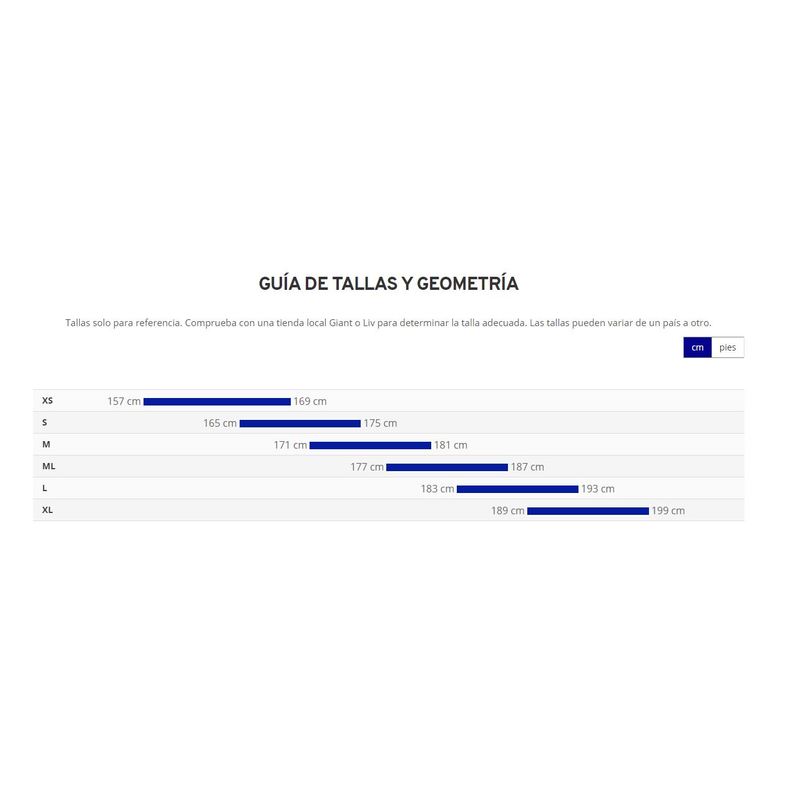 •Manillar Giant Contact XS:40cm, S:40cm, M:42cm, M/L:42cm, L:44cm, XL:44cm.