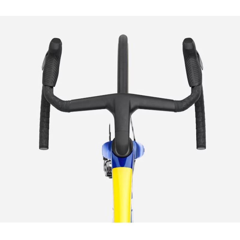 Talla: XL Manillar/potencia integrado Trek Aero RSL Carretera, carbono OCLV, Race Fit, alcance de 80 mm, caída de 124 mm, anchura de las manetas de 41 cm, anchura de los extremos del manillar de 44 cm, longitud de la potencia de 110 mm.